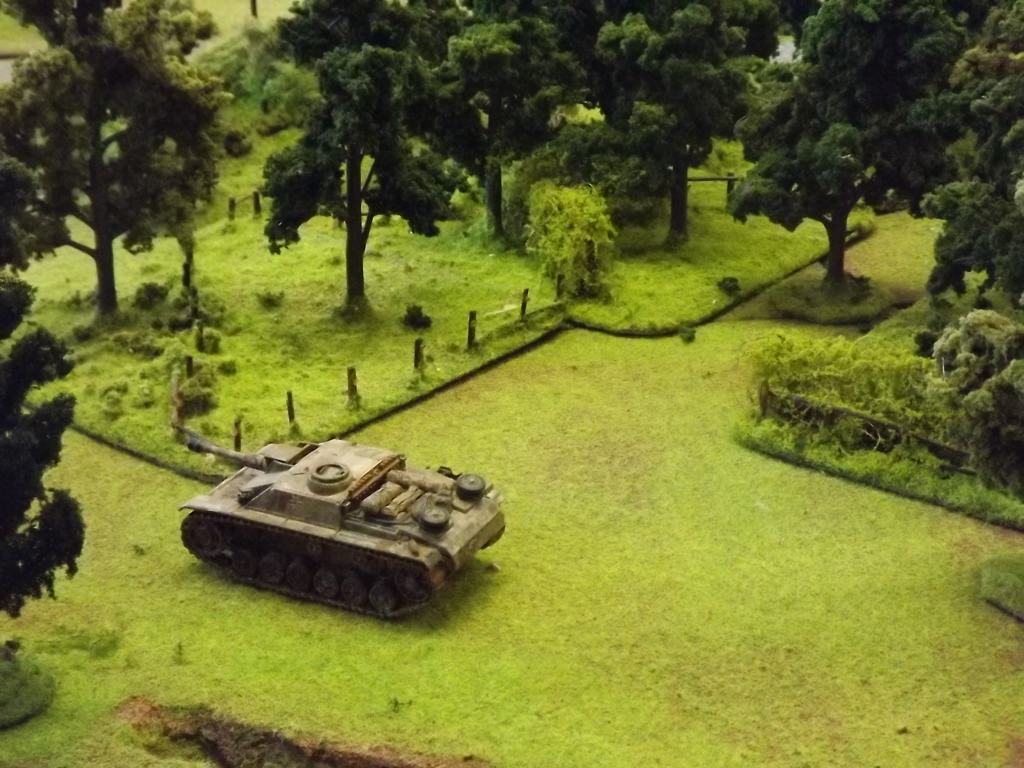 Stug waiting to counter attack from the town on the unsuspecting flank.
