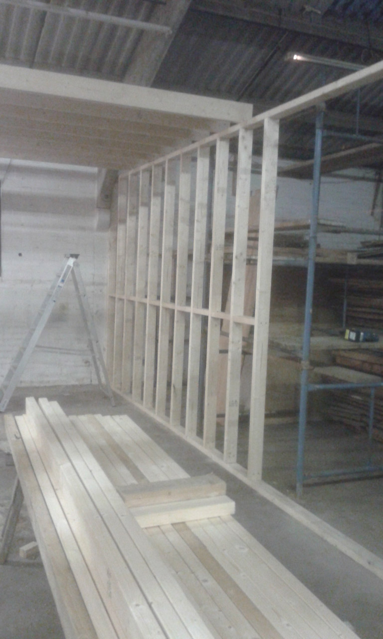 End stud wall going up with the storage area timber joists above.