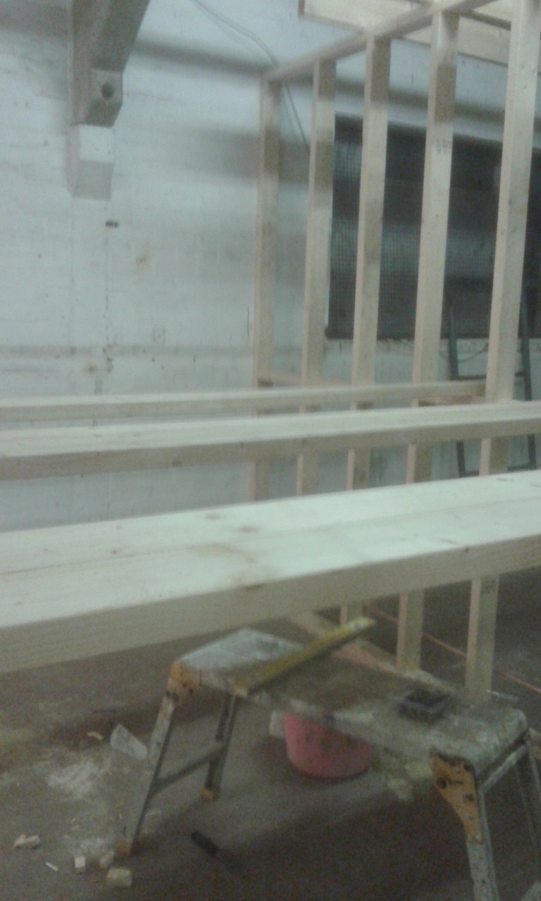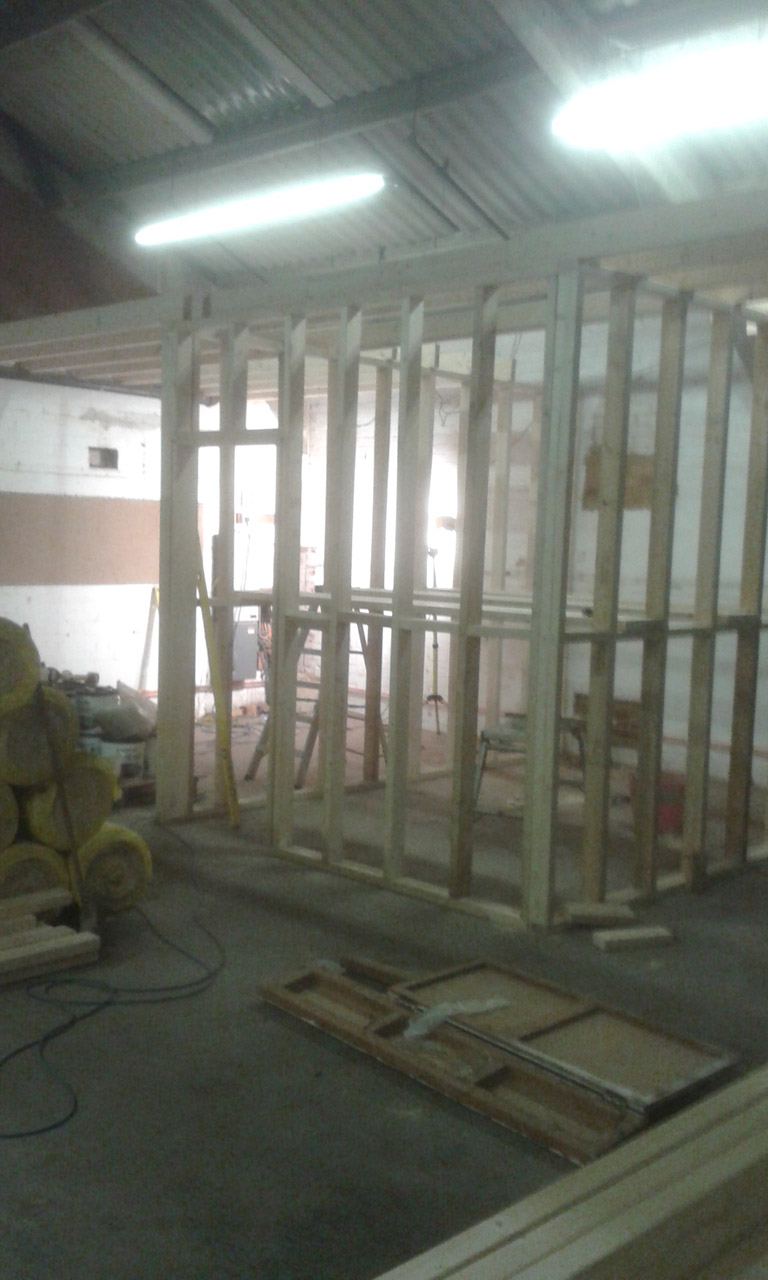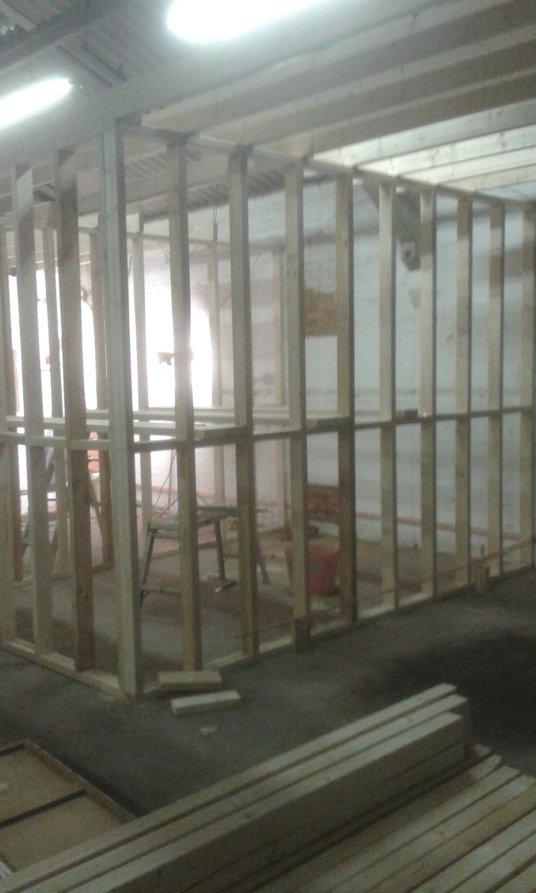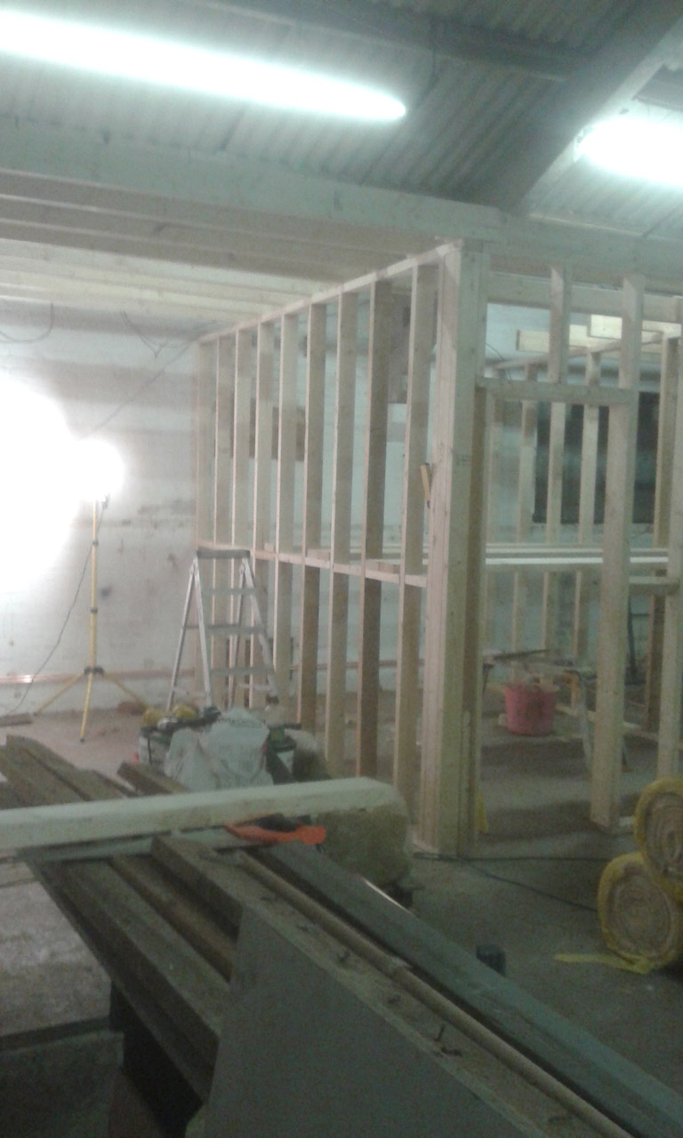 The internal size of the Workshop can now be seen clearly, with all the Workshop studs, doorliner, up and ready waiting to be plasterboarded.